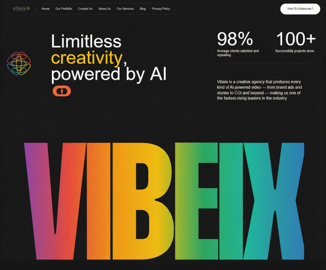 Vibeix is a next-generation creative agency specializing in AI-powered video production at scale. From high-impact brand films and storytelling content to advanced CGI, motion graphics, and cutting-edge AI videos, we craft visually powerful experiences that help brands stand out in a crowded digital world. By blending creative strategy with the latest artificial intelligence technologies, Vibeix is rapidly emerging as one of the fastest-rising leaders redefining the future of video content.